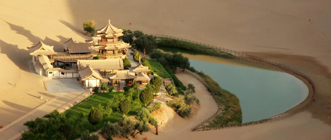 鸣沙山与月牙泉就像一对形影不离的CP,古往今来以「山泉共处,沙水共生」的奇妙景观震惊全世界。爬上沙漠的上峰,眺望月牙泉,千年的驼铃悠扬作响,看一次绝美的日落或日出,每一秒都是且看且珍惜的宝贵画面。