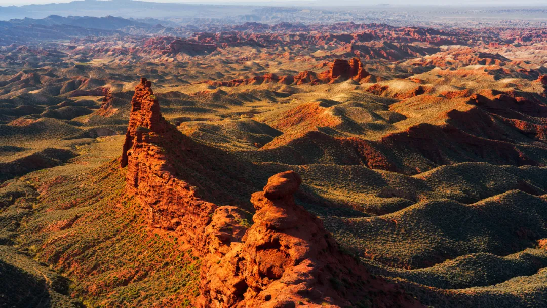 赭红的峡谷幽深而峰林奇特,地表沟壑纵横,仿佛来到异星球。峡谷的地质构造属于红层地貌,距今已有一亿八百万至两亿四千万年。从谷底到顶部分布着从寒武纪到新生代各个时期的岩层,层次清晰,色调各异。并且含有各个地质年代的代表性生物化石,又被称为「活的地质史教科书」。