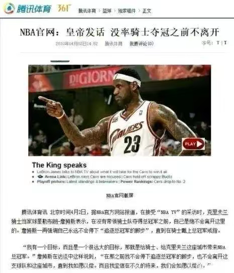 “我将把我的天赋带到南海岸”,随后詹姆斯在2010年宣布加盟迈阿密热火。