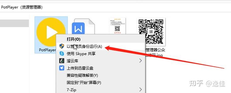 3.右击【PotPlayer.exe】选择【以管理员身份运行】