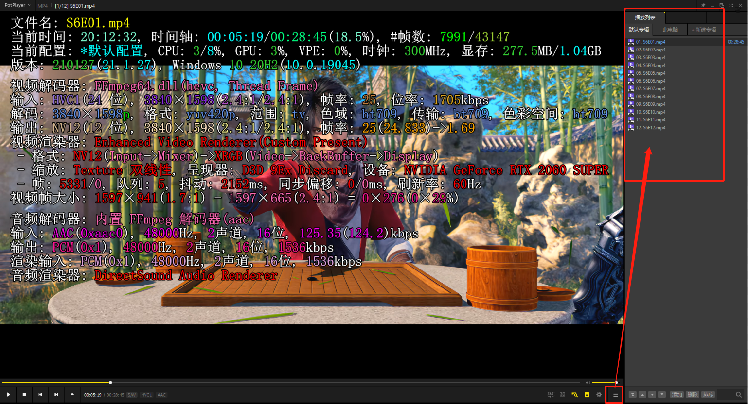 2.3.4 视频详细信息右下角的“三横杠”可以打开播放列表