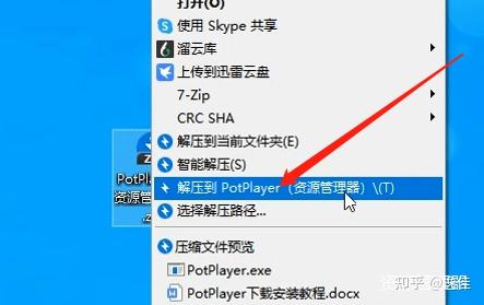 下载【PotPlayer(资源管理器)】软件安装包到电脑磁盘里,然后鼠标右击压缩包【PotPlayer(资源管理器)】,选择【解压到PotPlayer(资源管理器)\(T)】