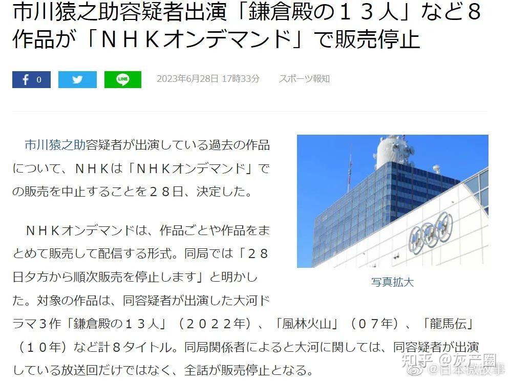6月28日,NHK宣布由于市川猿之助涉案被捕,其演出的相关节目将会在国内平台上停止播出,涉及作品包括: