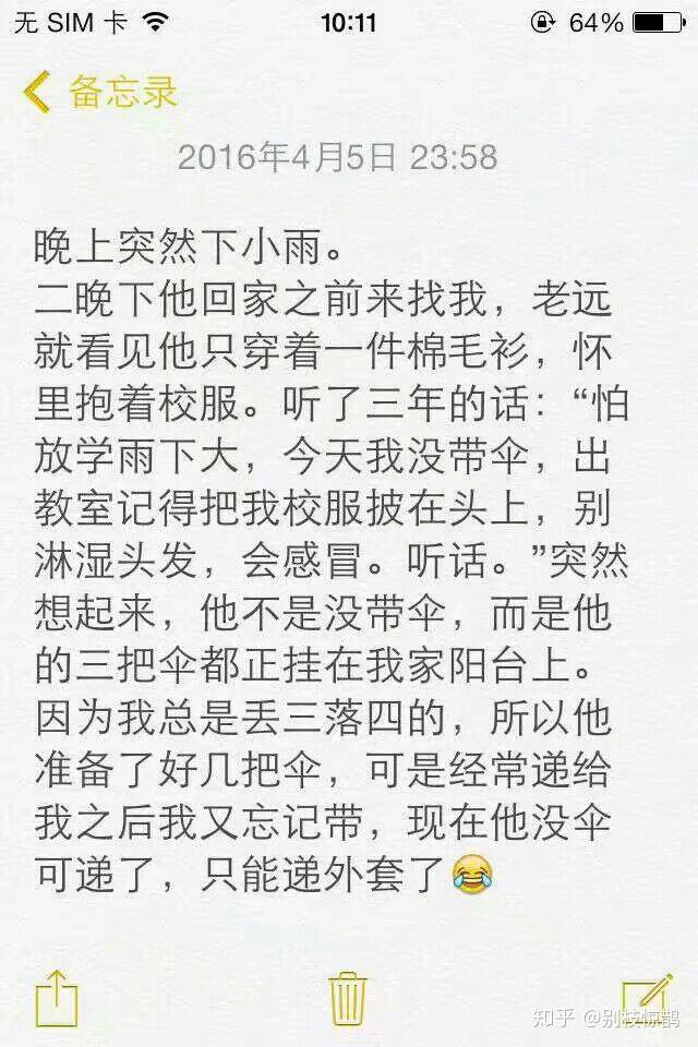 那个带锁的日记本里是他整理的我的照片28.春天到啦 ,他陪我去体育场放风筝。 买了一只好大的燕子 ,我们放了好久才成功 ,然后坐在草地上靠在他肩膀上看着风筝在高空飞呀飞, 听他讲高考后的计划:“我们要一起去好多好多地方, 去北边的哈尔滨看雪 ,去南边的三亚晒太阳 。”(大一就都实现了嘻嘻)然后开始唱歌给我听 ,那时候看着风筝憧憬我们将来一起去远方 ,就觉得一切都有盼头。