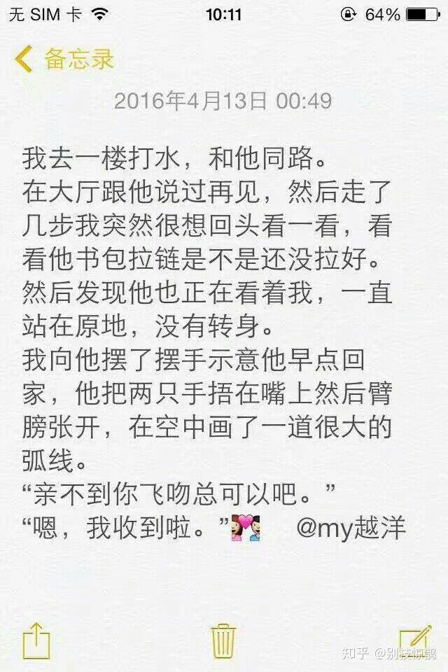 “我骗老师说帮她打冷水然后跑过来偷偷看看你, 化学老师等我等得烧杯估计都糊了 ,我先回去递水, 等会儿来帮你洗墨盘和毛笔哈 ,今天写的字不许扔喔 。”(我有时候觉得自己写得不满意就揉掉了 ,他都会把我扔到一边的宣纸团展开当作宝贝一样叠整齐收好 ,说万一宝宝以后出名了成为大书法家了呢我得珍藏着留以后发财呢 。然后跑去给我刷毛笔怕墨水溅到我校服上抢我的墨盘拿去刷 。)来接我吃晚饭的时候常常给我带小礼物, 校园里新开放的一朵小花或者他们实验室做的成品 。