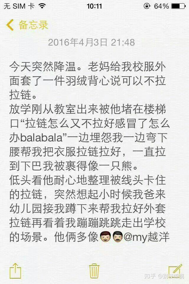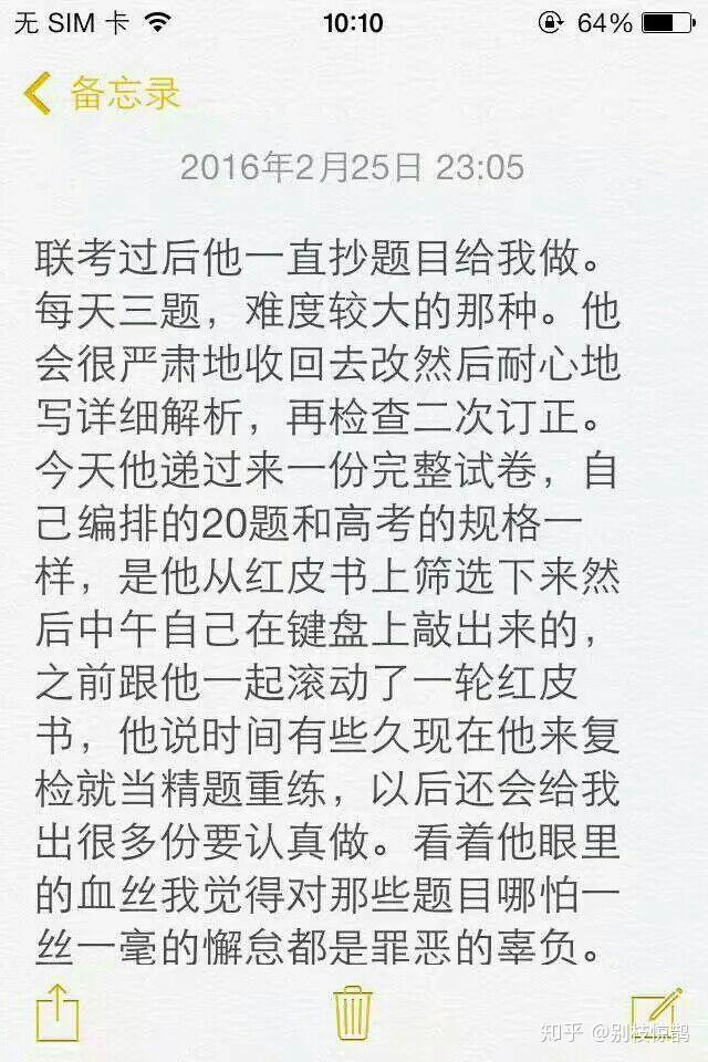 51.高考前跟他说好,不要来看我,我怕自己情绪波动,他答应了,承诺在南京等我。结果我考完最后一门走出考场,就看见他了。爸爸妈妈站在右边,他站在左边。没法描述那种心情,反正眼泪刷得一下子就掉下来了,和他们拥抱,然后不停地接过他的手机跟打电话来关心的朋友讲话。“嫂子恭喜你们啊熬过来了”“嫂子辛苦啦”一条一条的信息电话我们俩忙得不亦乐乎,那种欣喜之情再难遇到。然后他去班级帮我把学习资料箱子都搬回家,找班主任拿我的志愿卡,怕我丢三落四又各种吩咐交代,结果还是不放心就放在他那里保管了哈哈哈。后来才知道他其实旷了大学期末考试,从我走进考场的第一天他就悄悄回来了,窝在朋友家没敢来见我,怕影响我心情也怕我骂他。“你知道吗,从你走进考场前一天开始,我就已经紧张了,没办法在学校待下去了,只想快点离你近一点,待在离你更近能让你需要我我就立马出现的地方。”听他讲这段的时候眼泪哗啦哗啦。