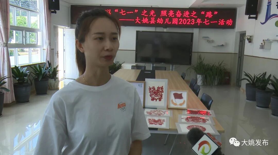 县幼儿园大二班学生吕思陶说:“中国共产党是我们所有小朋友的妈妈,我们在党的呵护下茁壮成长,建党节到了,祝伟大的中国共产党越来越辉煌,祝祖国繁荣富强。”