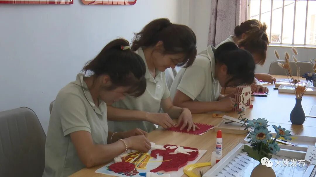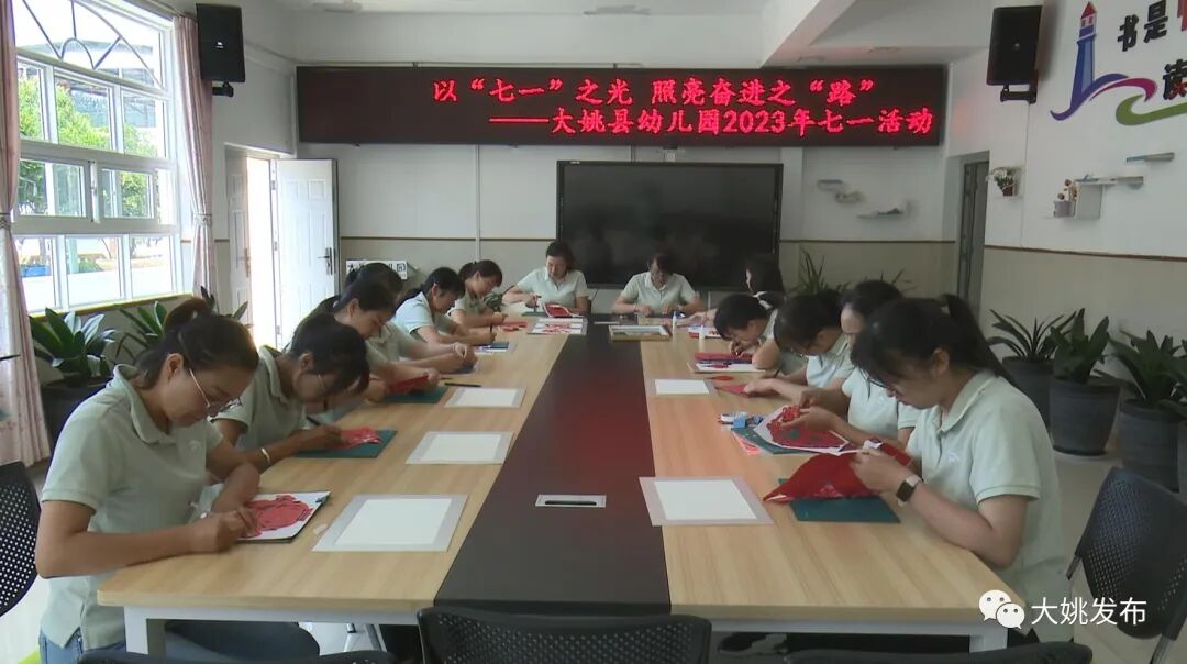 红色手工制作活动中,一个个手工作品,就是一连串的红色记忆。老师们用手中的剪刀,剪出红色印记,描绘出她们对党光辉峥嵘岁月的敬仰与对美好未来的憧憬。