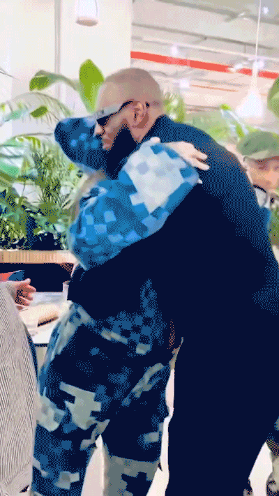 随后还上身了 LV 新款棒球夹克以及数字迷彩西装短裤,将低调贯彻到底。