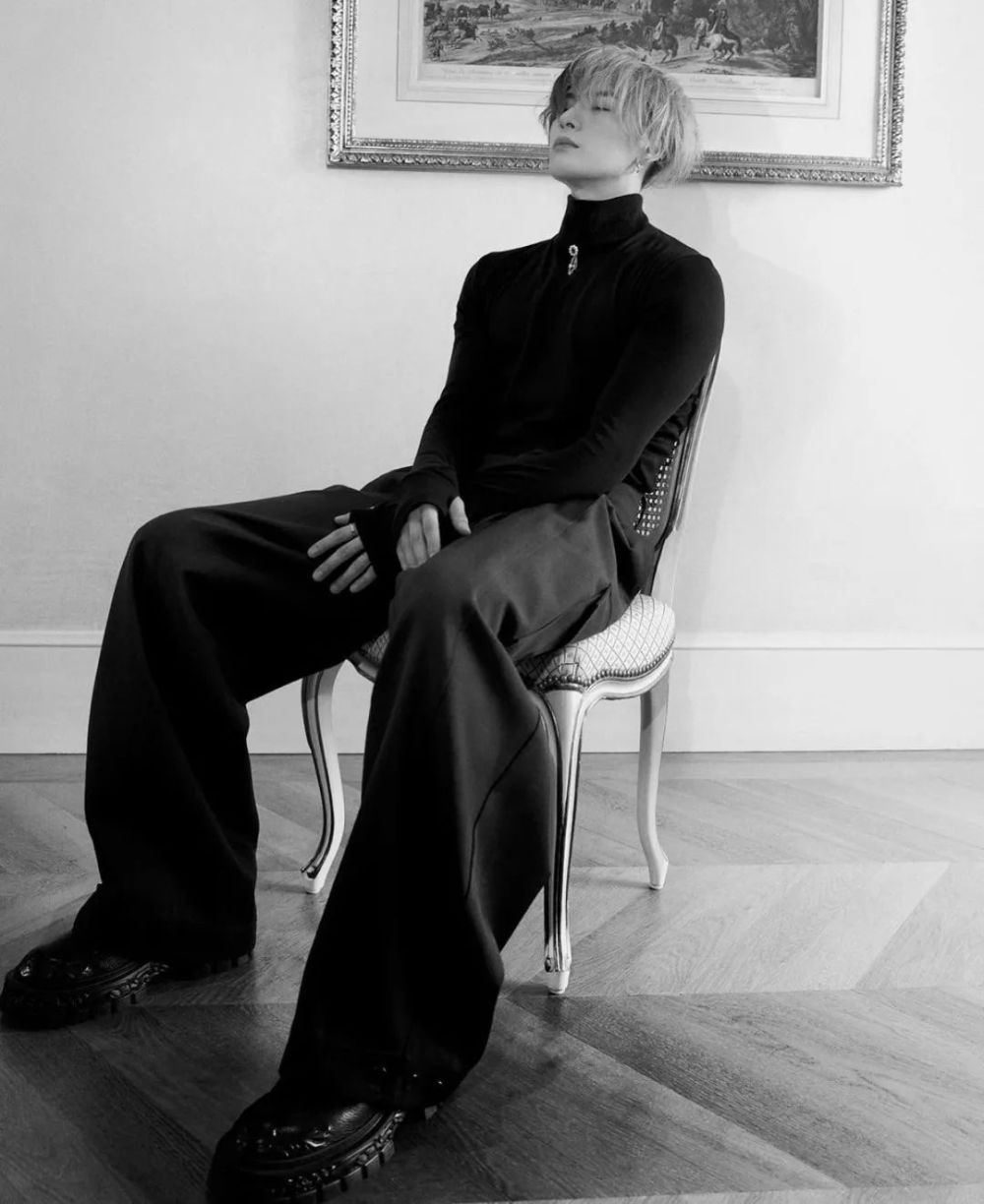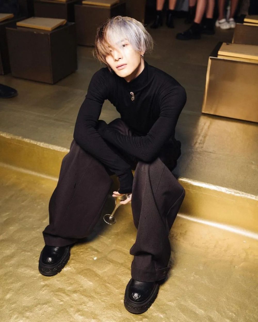 作为 Louis Vuitton 新晋品牌代言人「人间荷尔蒙」王嘉尔以 ALL Black 造型示人,虽然服饰并不乍眼,但阴阳造型的发色却让他难以低调。