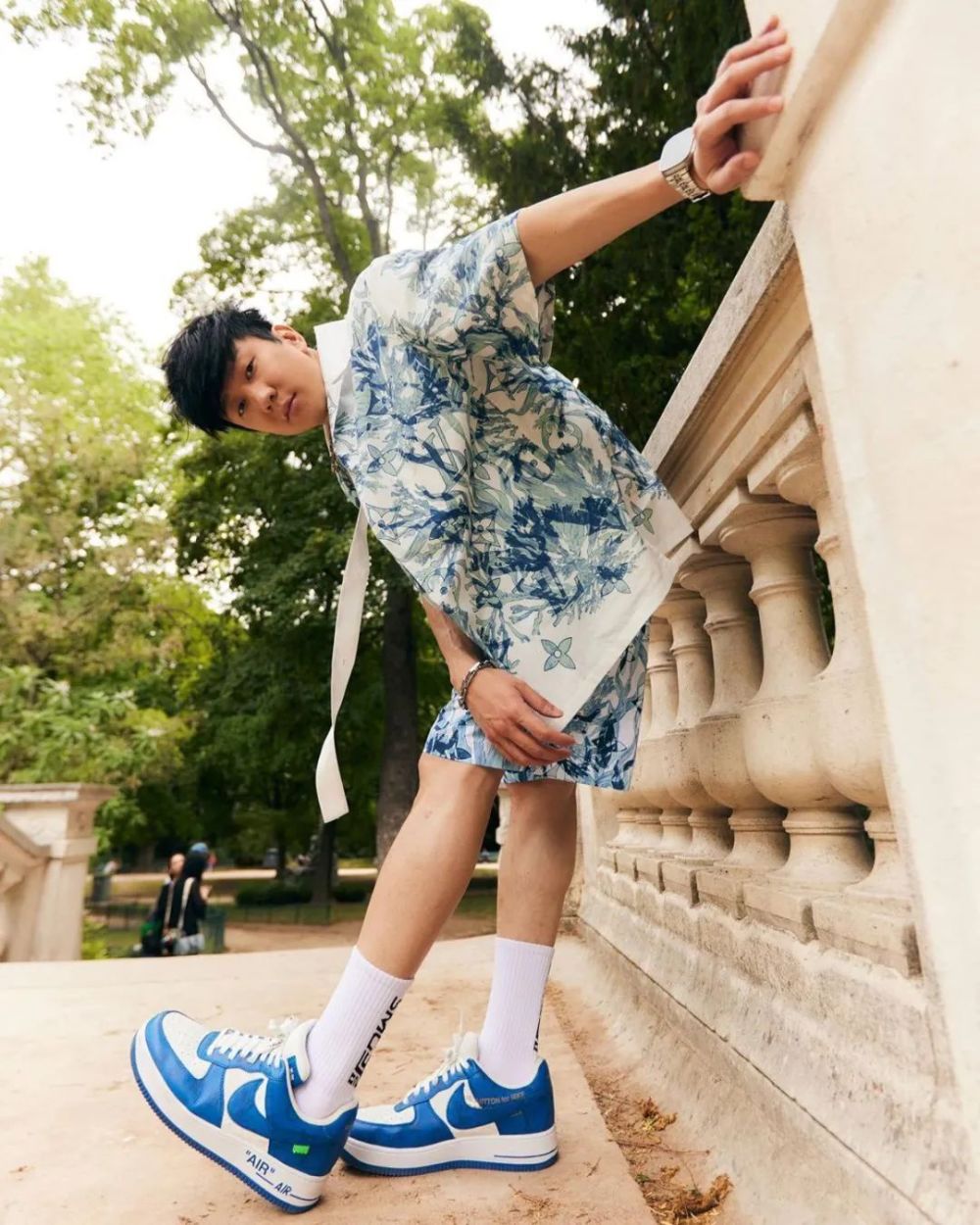 同时林俊杰还将自己的白蓝配色 Louis Vuitton x Nike Air Force 1 穿了出来,可见重视程度。
