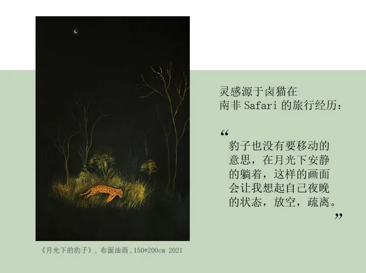 卤猫,1988年生于福建,现居上海。他的作品,以一种质朴纯真的方式接近自然和自我,贴近生活,抒发情感。他将日常一隅记录成画笔下的观察,将旅途中的吉光片羽收集成画中的?景,将记忆里的思绪描绘成探索内心的尝试。