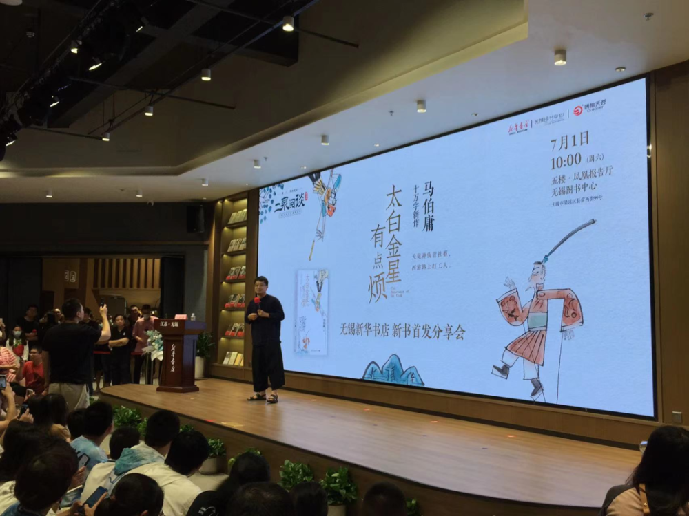现场座无虚席,报告厅出入口更站满了热情的读者。这次来锡,马伯庸带来了其新作《太白金星有点烦》,这本书从职场人的视角重新解读古典名著《西游记》,传统与现代交织出了趣味的火花。