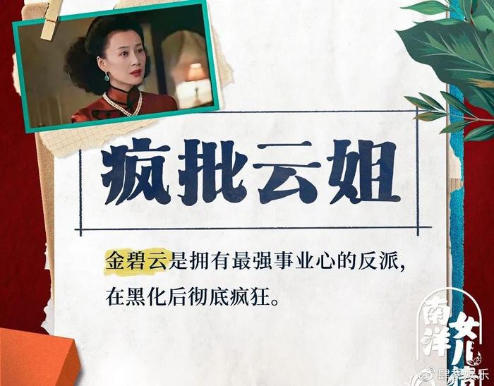 这部以女性为主角的作品,就算是剧中配角的女性人物也都是性格鲜明的。比如一人在南洋挣钱便带领整个村的姐妹来这里挣钱的大家姐七姑娘;还有一直都在保护整个南洋女性的白天女南兰小姐;以及一心只想在陆家混得一个好身份不成功便直接手夺陆家家产的陆家二太太金碧云等等。