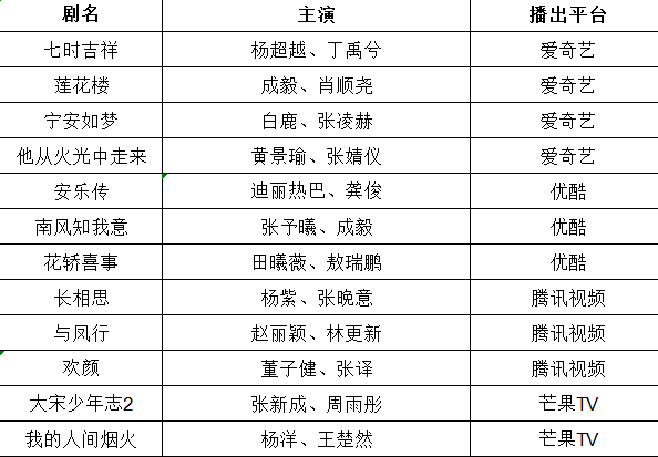 除了上述提到的古装剧,各大平台还有不少古装剧蓄势待发。爱奇艺有《七时吉祥》《莲花楼》,腾讯有杨紫、张晚意主演的《长相思》,赵丽颖、林更新“二搭”的《与凤行》。优酷有《花轿喜事》,芒果TV还有《大宋少年志2》等。