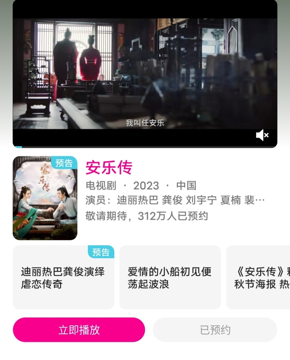 迪丽热巴、龚俊领衔主演的古偶《安乐传》也在不久前发布了“即将播出”的预告,两位高颜值主演回归到自己的舒适区,也颇让粉丝期待。截至目前,优酷上《安乐传》的预约人数已经超过了310万。