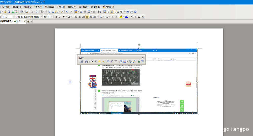 2、直接按下这个键就是截全屏,来到wps文档中ctrl+v粘贴,如图,看到整个屏幕都被我截下来了。