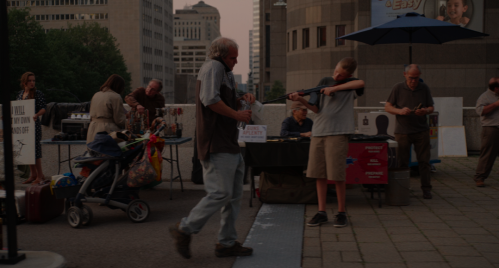 手拿机枪的少年正跃跃欲试;众人围观下的跳楼现场,人们看热闹不嫌事大,催着跳楼者自杀;更不用说紧随其后的混乱街道,和博迎面争抢的古怪文身者。艾斯特通过这些无政府式的失序状态,让观众迅速进入博的内心世界。