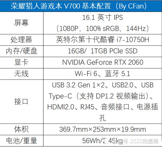 第四款:荣耀猎人 V700(i7 10750H/16GB/1TB/RTX2060)【参考价: 8499元】