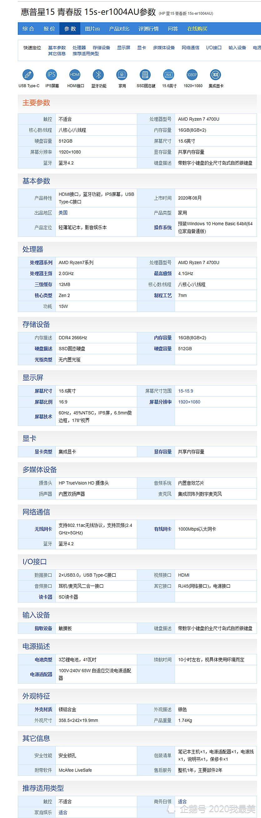 第三款:惠普(HP)星15s-er1004AU 青春版 (R7-4700U 16G 512GSSD UMA FHD IPS 天然银)【参考价:4099元】