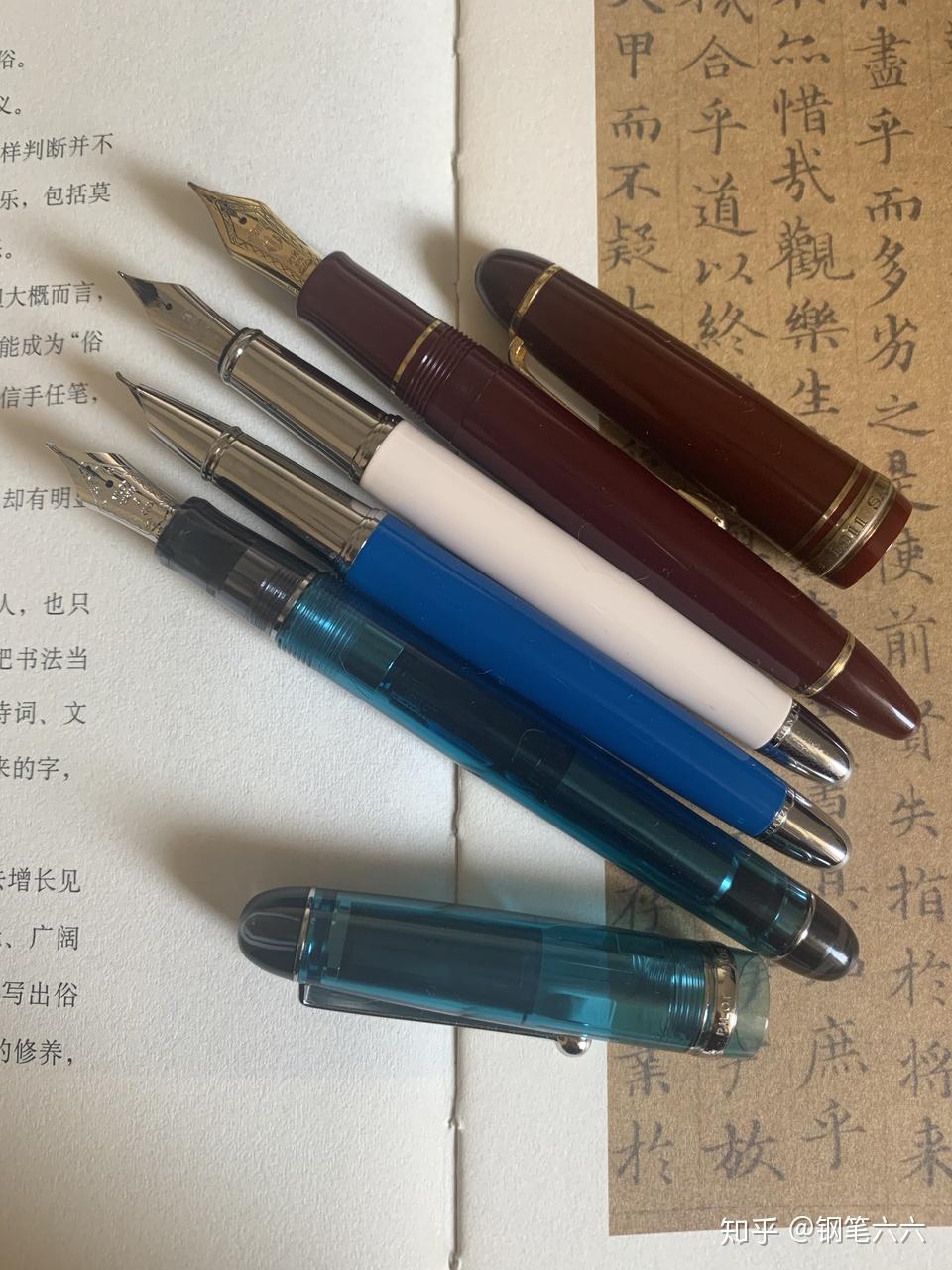 入门用哪款钢笔:实际上用不用钢笔都无所谓,网上很多大牛都是在用中性笔书写,但是一支好钢笔我觉得确实会对初学者有所加成,一方面是心情,好点的笔让你想去使用,也自然能多练一些;另一方面钢笔的软弹特性我觉得对初学者的控笔能有所加成。我甚至建议可以多选几支钢笔,例如选一支专门用于练字的书法笔,笔尖上翘那种,这种适合没事儿自己划拉划拉;练字帖的时候可以选一支日系m尖,我觉得百乐74或者写乐21k都行,性价比高一些的百乐笑脸也可以……