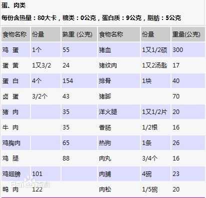 表中重量一栏里数字越小,说明此食物的能量越高。(数据来源:百度百科)