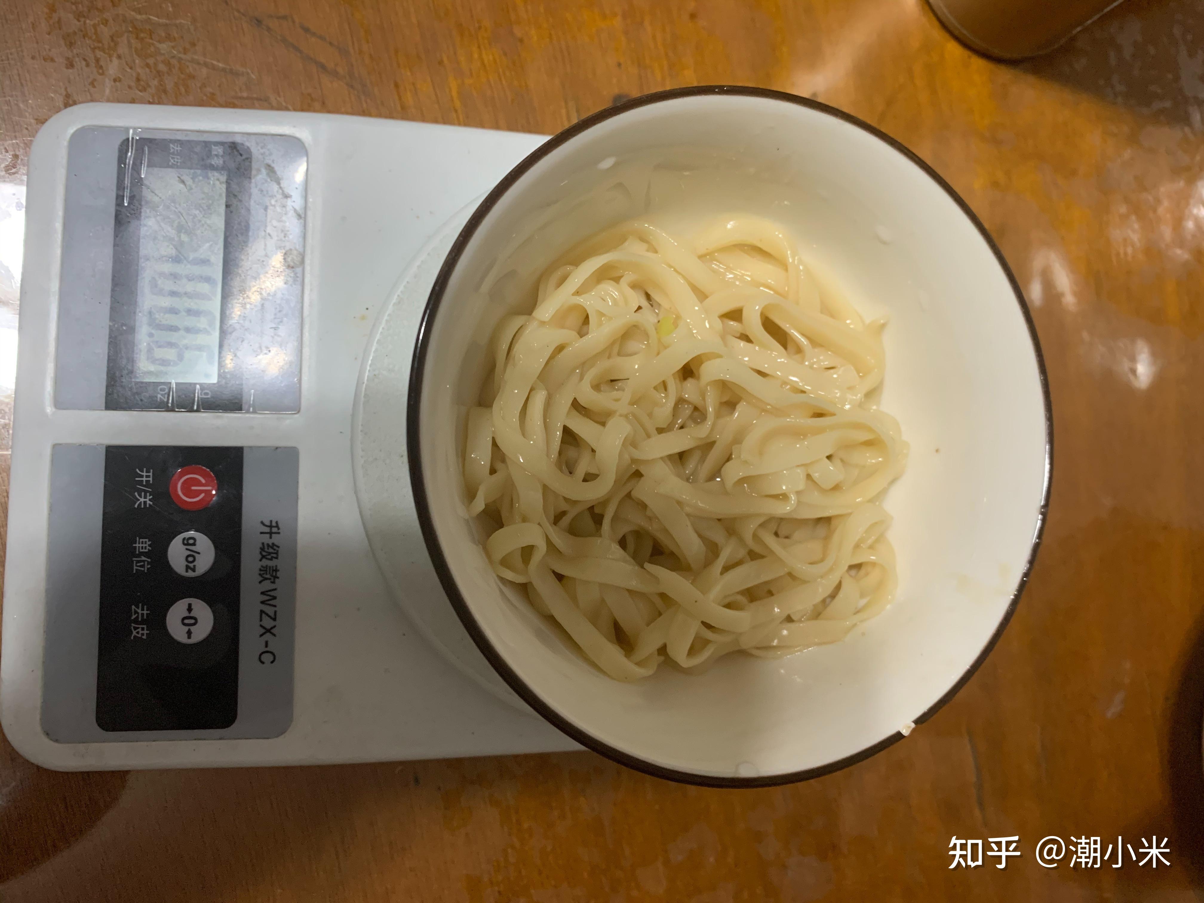 这里一定要有个基本概念:比如在各种拉面馆,一份标准的面的分量大约是湿面120-150g,煮熟了能够达到180-230g之间。我对此非常熟悉因为我有很多关于面制品的研发经验,这个吸水率是很稳定的。而这一碗面,一个成年女性能基本吃完是没问题的,所以一天500g煮熟的面条也仅仅是2碗半面的分量,换算成三餐的主食,实在不多。