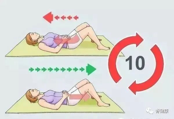 这是凯格尔的另一个变体,进行一组凯格尔肌肉牵拉运动,想像盆底肌是一个真空,收缩你的臀部,并且(平卧屈双膝)双腿向上抬升向内牵拉,保持这个姿势5秒钟然后放松。这样做10次。它应该需要大约50秒才能完成。