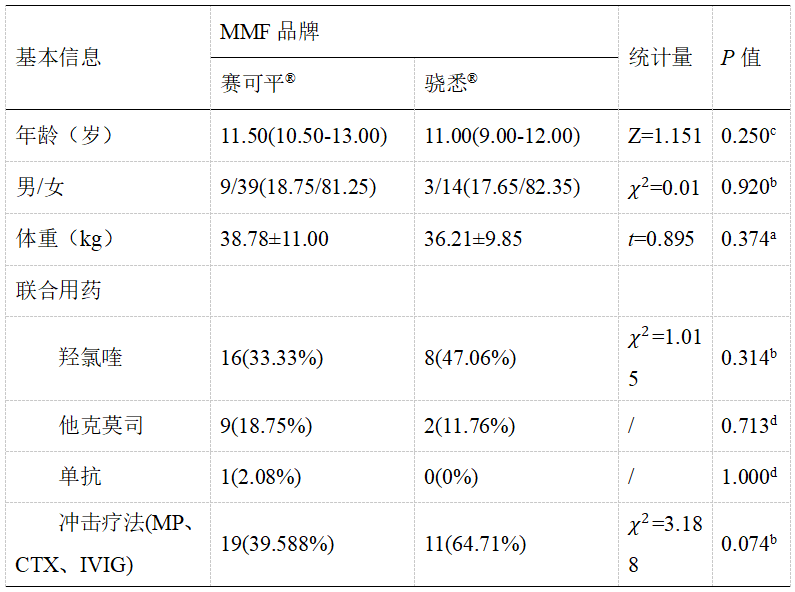 本研究为回顾性队列研究,根据患者服用吗替麦考酚酯片的商品名分为赛可平?组和骁悉?组。赛可平?组患者服用国产仿制药赛可平?,骁悉?组患者服用原研药骁悉?。本研究经中山大学附属第一医院临床科研和实验动物伦理委员会审核批准。