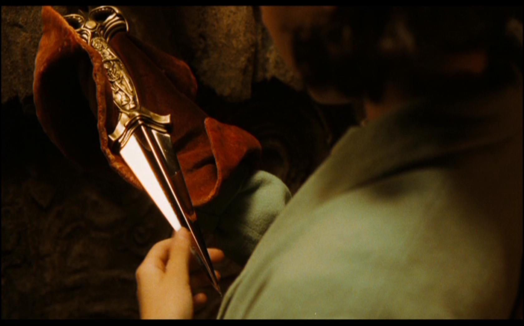 而女主角的匕首则对准了自己的弟弟。在最后一个考验中,潘神手拿匕首告诉女主角,只要一小滴无辜人的鲜血就可以打开异世界的大门。