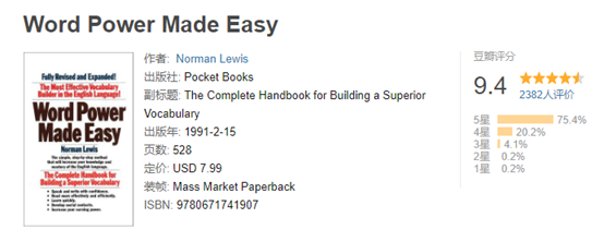 大部分是SAT和GRE单词,单词是全英释义,还会配上练习题。Word Power Made Easy