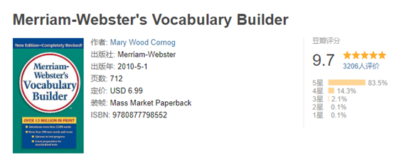 适合英语较好的学习者,并不是一本词汇列举书,而是为你建立英语词汇体系。此词书注重词源以及词汇的扩展。结合英英韦氏字词典Merriam Webster Vocabulary Builder学习效果非常好。Merriam Webster Vocabulary Builder
