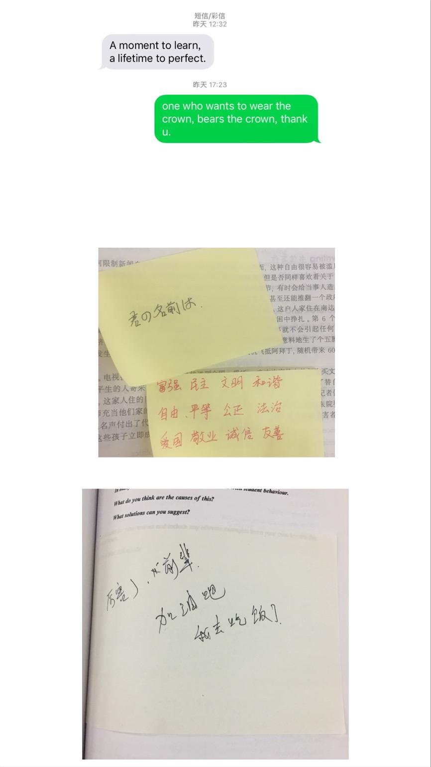在这认识了好几个人,朋友们和师妹们都帮了我很多,有帮我借书,解答问题,还有可爱的小纸条。最后发现,我要的不是雅思结果,我要的是持续的学习力,这才是最重要的。最后附几张图吧,英语已经结局了,接下来是我的工作之路。