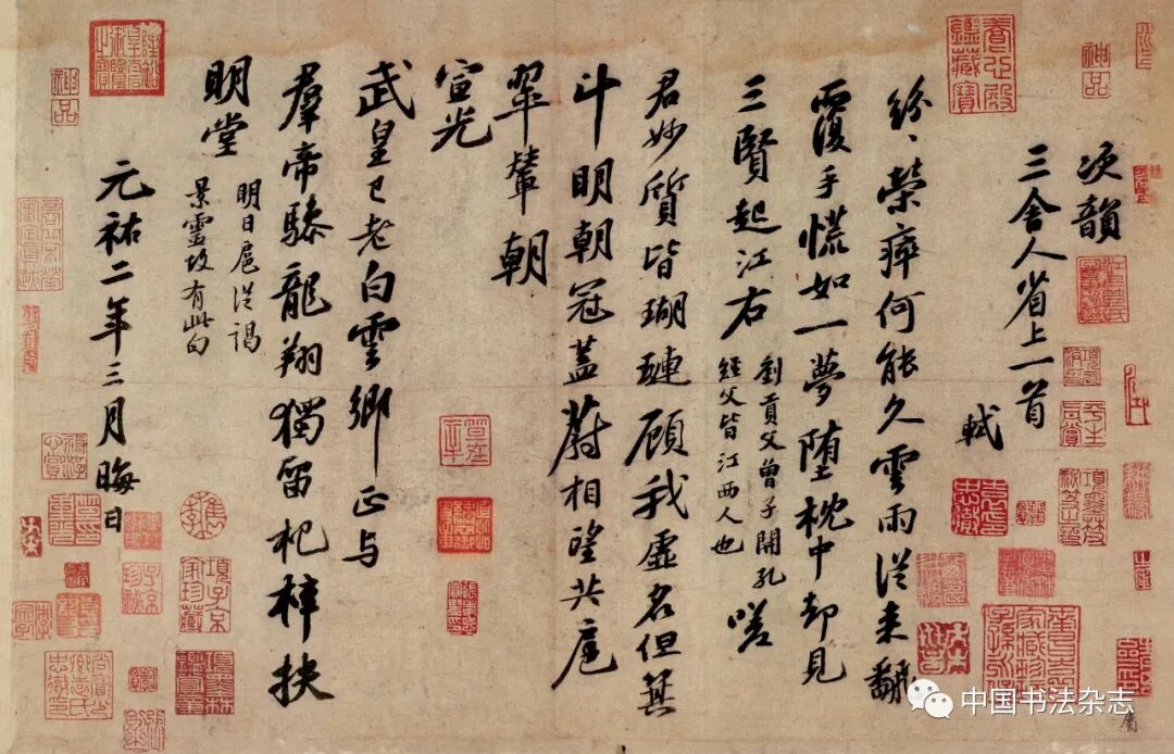 宋 苏轼 行书次韵三舍人省上诗卷 纵29.8cm 横46.5cm 纸本 元祐二年(1087) “台北故宫博物院”藏