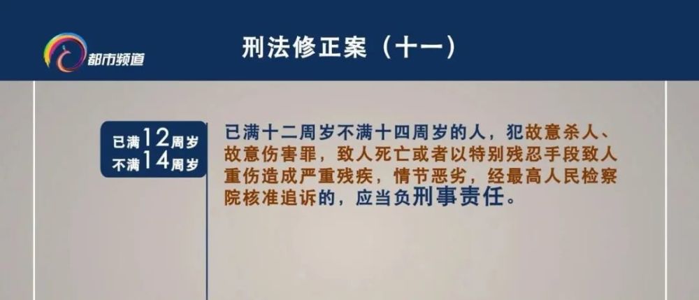 表决通过的刑法修正案(十一)中明确:已满十二周岁不满十四周岁的人,犯故意杀人、故意伤害罪,致人死亡或者以特别残忍手段致人重伤造成严重残疾,情节恶劣,经最高人民检察院核准追诉的,应当负刑事责任。