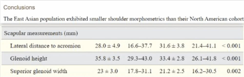 遗憾的是,羊看了一篇论文,里面测量了东亚人和北美人的肩膀数据,结论是我们东亚人的肩膀形态确实更窄小。