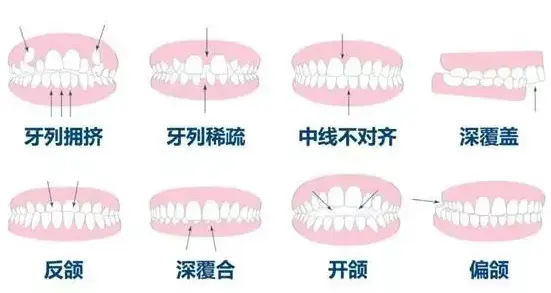仅牙性矫正和有骨性结合的牙齿矫正中,也分不同类型,