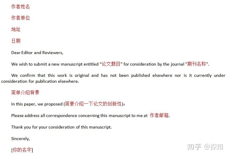 Cover Letter, 即投稿信,是论文投递时与论文一起发送给编辑的信件。简言之,就是需要将自己的论文介绍给杂志编辑。