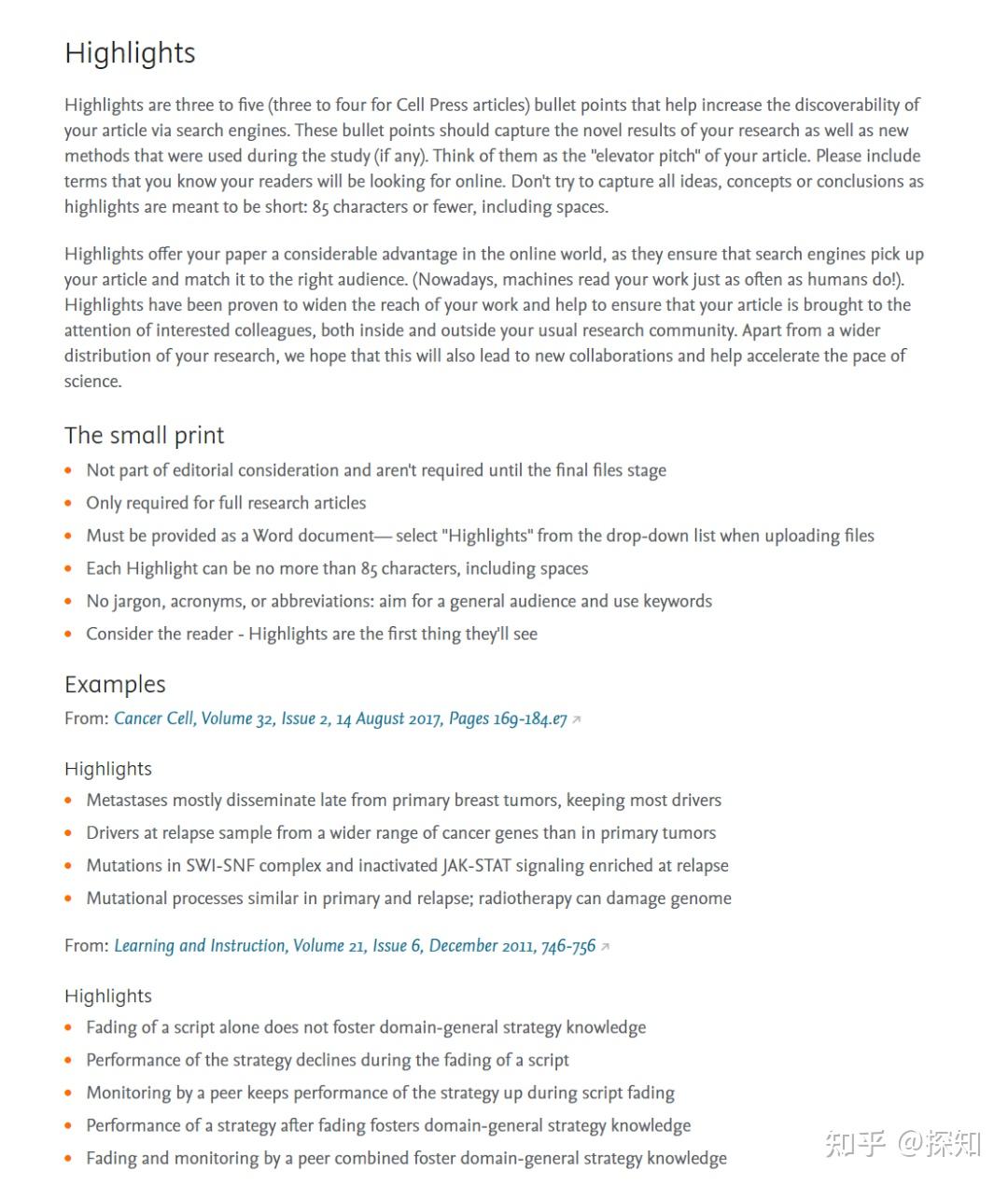 Elsevier旗下期刊对Highlights的具体要求见下图: