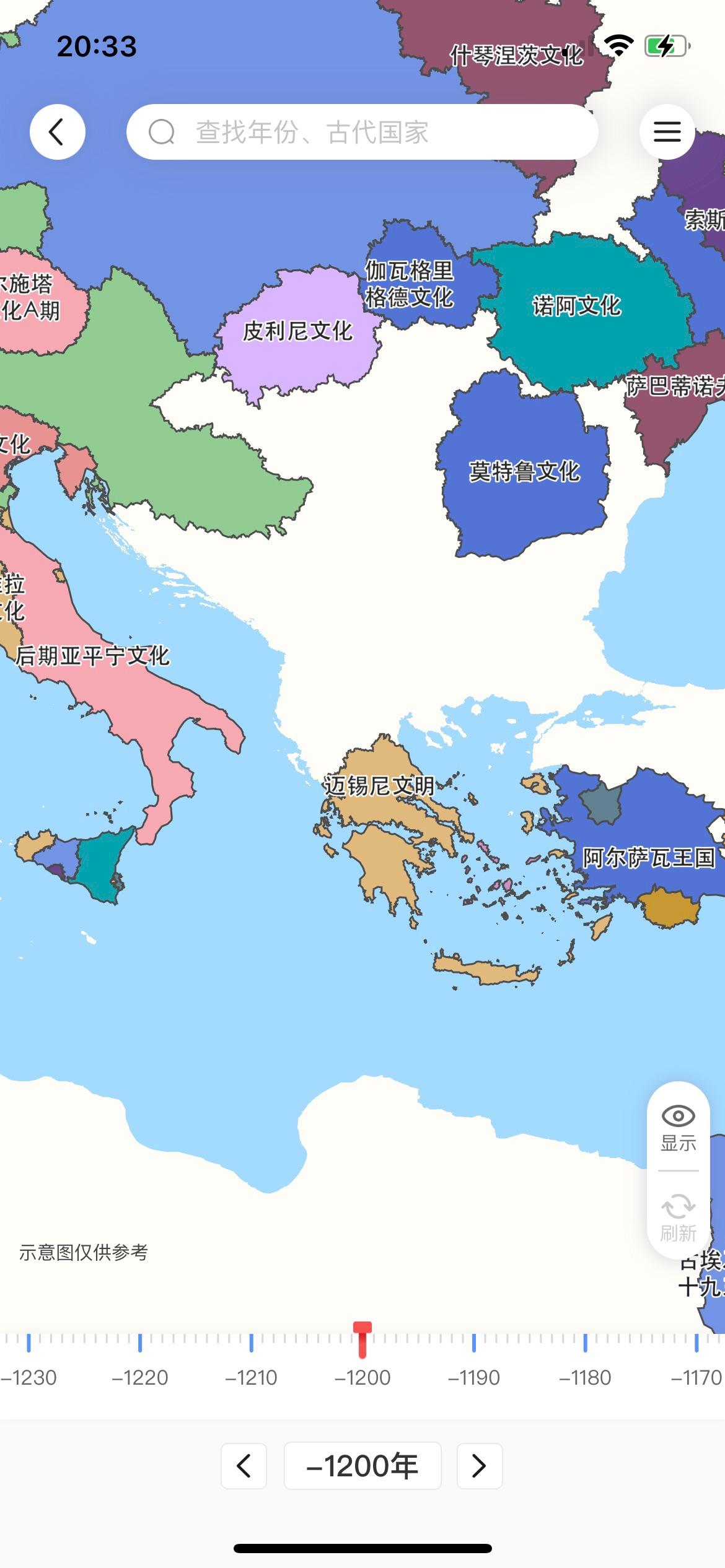 这是公元前1200年左右的迈锡尼文明,也是荷马史书里的主要场景。对比一下,其他地区要么空白,要么就是“文化”。文化与文明的差距,大概就是分分钟碾压120个来回的节奏。