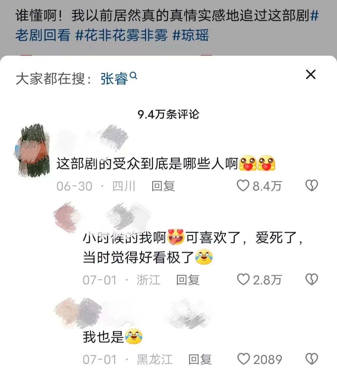 雷人的台词,“抓马”的童年众所周知,90后、00后的童年黑历史是与看过的“雷剧”分不开的。以《情深深雨蒙蒙》《花非花雾非雾》为代表的琼瑶剧,总以善用排比句式、文学性十足,但又让人尴尬到不适的对白给观众留下深刻印象。比如《花非花雾非雾》中,男主齐飞与女主叶凡在分手时将带着回忆的手机扔到河里,成为“天底下唯一一对让手机殉情的情侣”。