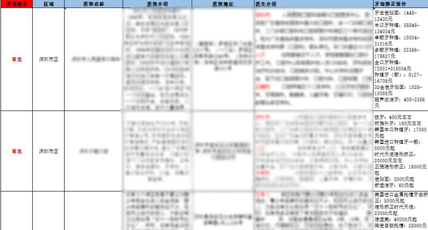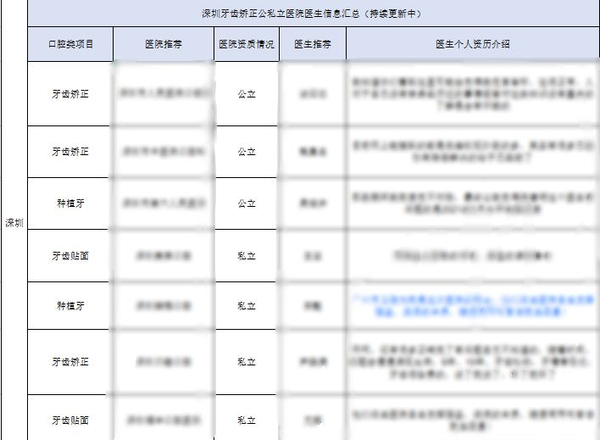 深圳地区口腔医院、医生信息汇总整理,在上方链接中可获取,禁止转载