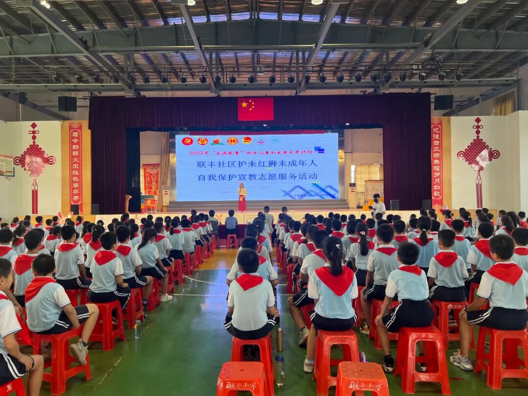 为大力宣传普及未成年人保护法知识,提高学生自我保护意识,预防未成年人受到侵害。9月15日和9月23日,联丰社区吉安学校护未红狮队分别到联丰社区综合性文化服务中心、联胜市场、党建公园各开展一场社区护未红狮未成年人自我保护宣教志愿服务活动之护未红狮快闪活动,大力宣传未成年人保护法,呼吁社会各界人士共同关注未成年人健康成长。