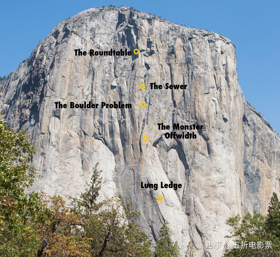 酋长岩Freerider路线,各个主要段落