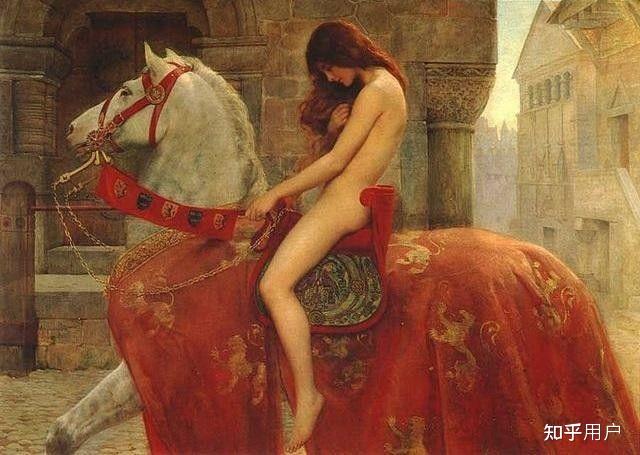马背上的Godiva夫人,是用自己的女性身份为民请命从而成为自己价值真正主人的最典型代表。通过放弃自己的价值“裸体的巡行”,从而成为真正的权力主体,这与失去生命从而超越生命的宗教内核暗合。