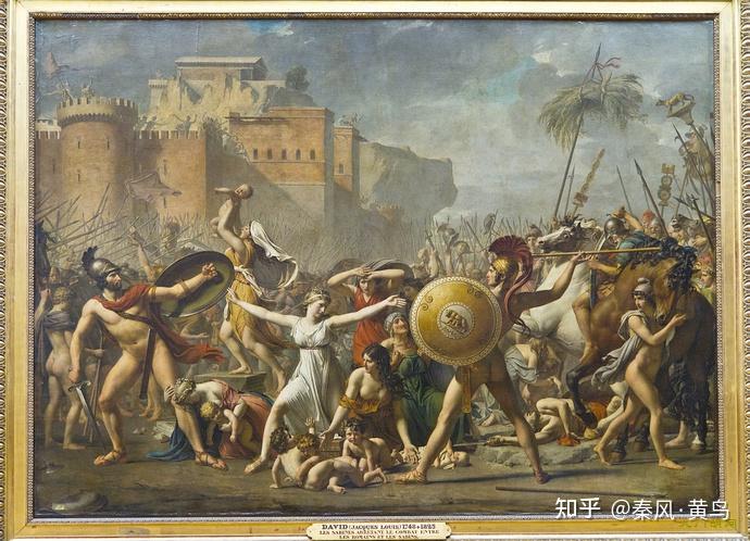 《萨宾女人的调停》萨宾人积蓄力量前来攻击罗马想讨回他们的姐妹,但这时他们的姐妹都已成为罗马人的妻子和母亲,这些女人带着孩子冲出来调停争斗,因为谁胜谁负她们都将失去丈夫或父兄。于是罗马和萨宾化干戈为玉帛,合并为一个国家,享受罗马公民的待遇。