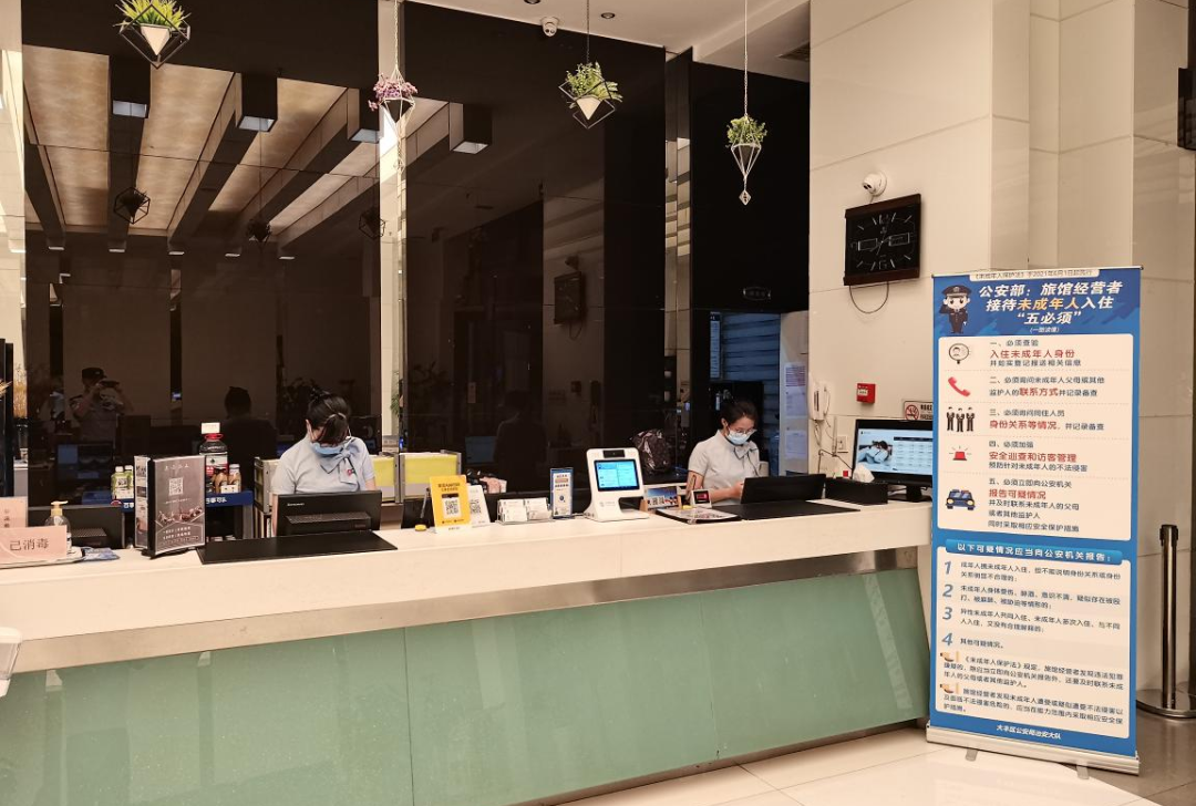 组织派出所警力到宾馆开展上门入户宣传,向旅馆经营者和前台工作人员宣传告知《未成年人保护法》和“五必须”要求内容,严格履行登记查验、问询联系、巡查报告等职责,对宾馆前台工作人员就旅馆信息系统新增加的未成年入住模块操作进行培训,增强责任意识,确保旅客信息及时准确上传。