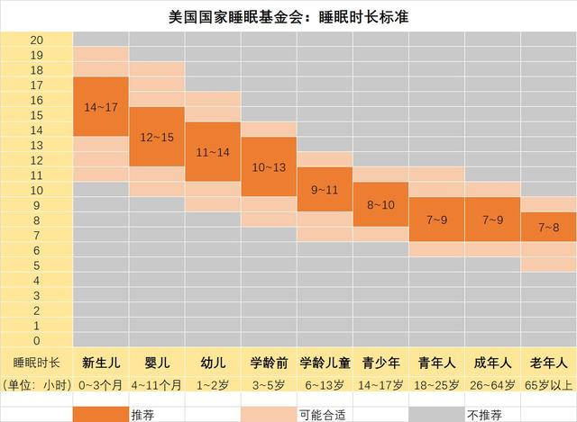 事实上,对于睡眠的需求,如下图所示,每个年龄段不尽相同。