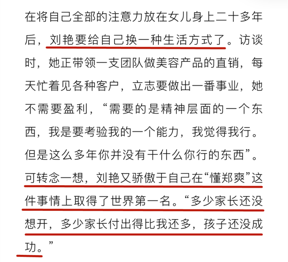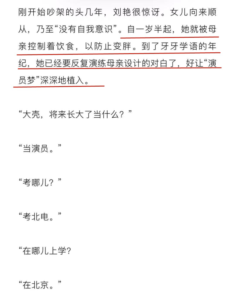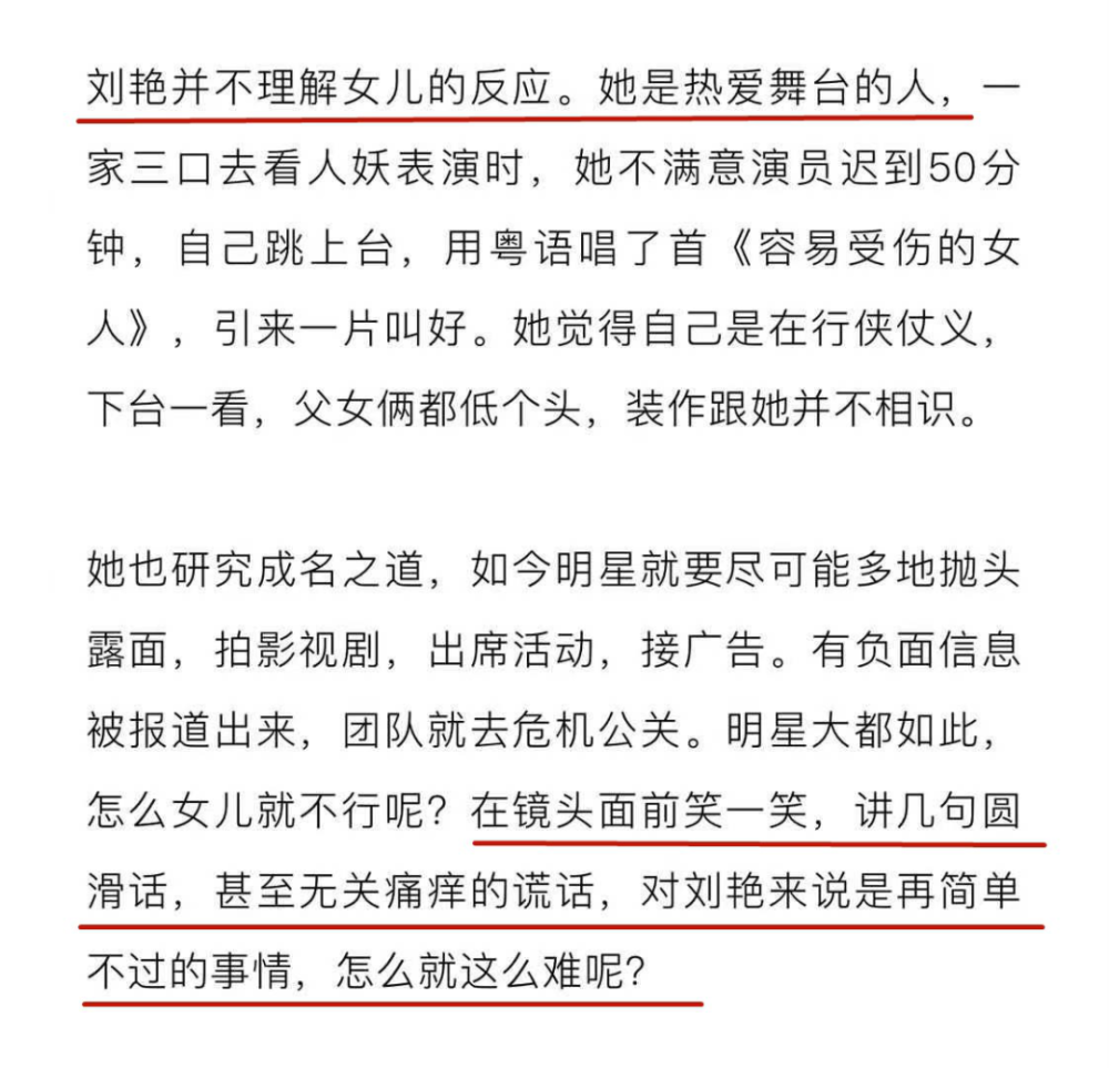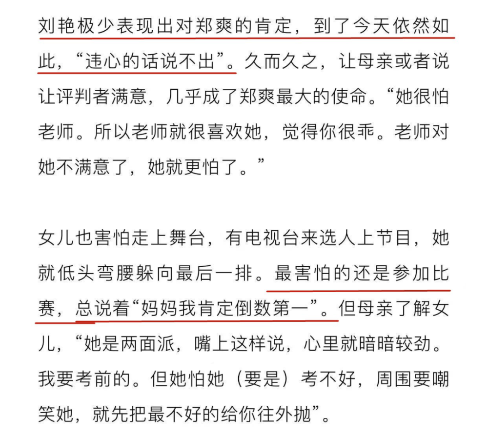 因为从刘艳的角度来看,她从来不觉得自己把寄托强加在女儿身上有什么错