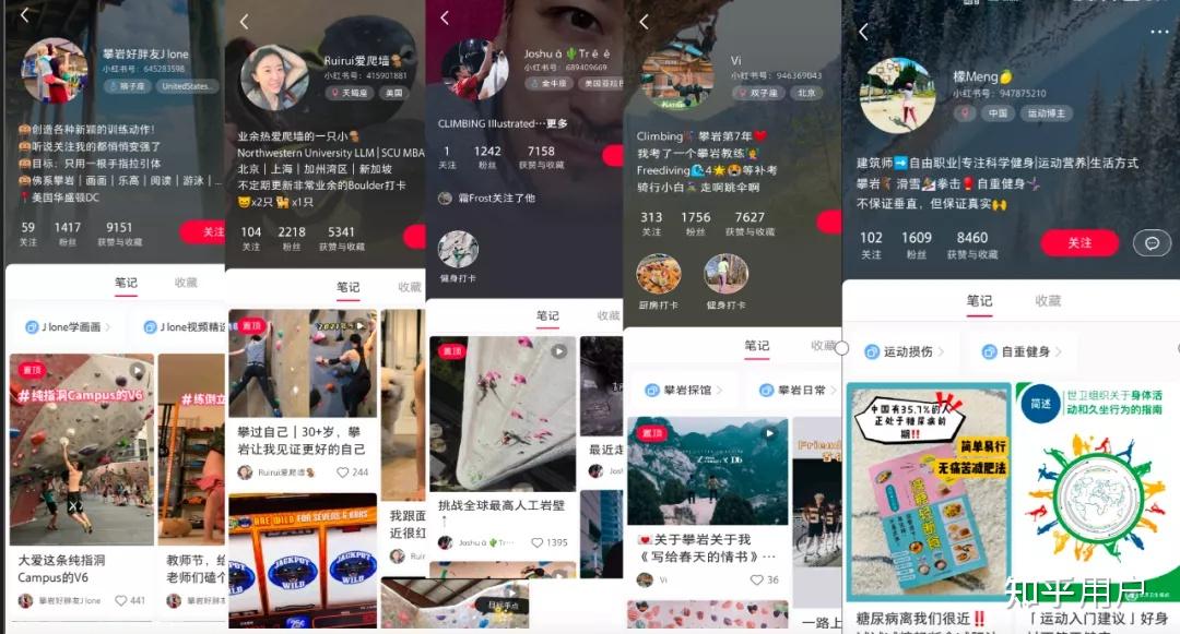 小红书攀岩头部账号:除此之外,还有各类小众运动(登山、冲浪、滑板等)